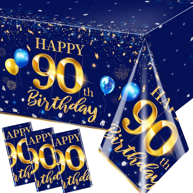 - 【90thTABLECLOTH】 You will receive 3 pieces of blue gold birthday tablecloths, each of which is about 70.8x42.5inch/180x108cm in size. You can use our tablecloths to decorate your birthday party, making your 90th birthday party vivid and suitable for ordinary rectangular tables. It is long and large enough to be used for table decoration, which is a fashionable element of men birthday party decoration.