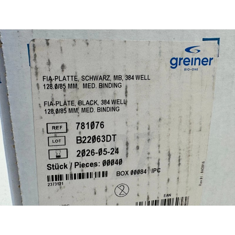 Greiner Bio-One (Case of 40) Greiner Bio-One 781076 FIA-Plate Black 384-Well Microplate
