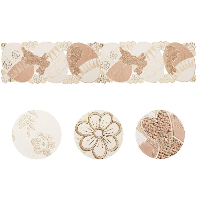 Grelucgo Embroidered Country Rustic Decorative Burlap Bunny Table Runner for Easters (14x69 inches)