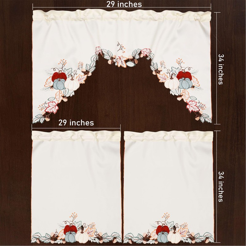 Grelucgo Embroidered Fall Autumn Thanksgiving Kitchen Window Rod Pocket Swag and Tiers Curtain Set (Pumpkins)