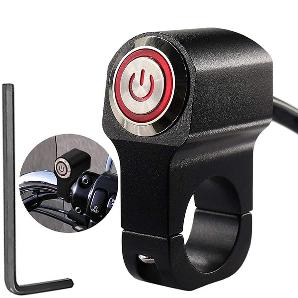 Greluma 1 x 12 V motorcycle ATV 22 mm (7/8 inch) Handlebar Button Switch Headlight Hazard Brake Fog Light On/Off Switch (red)