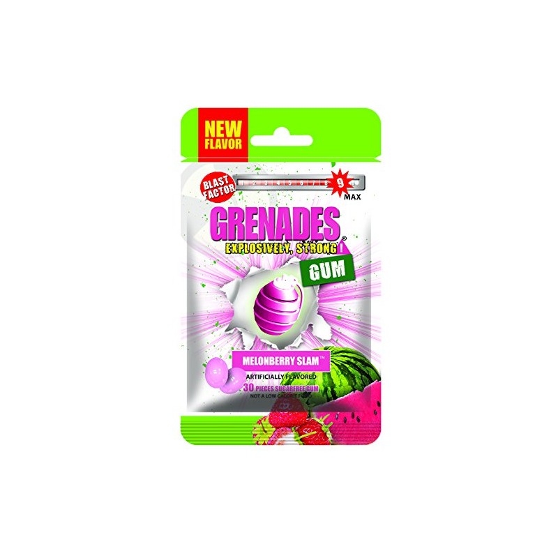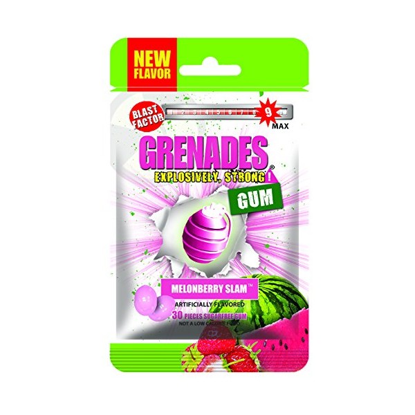 - VARIOUS BLAST FACTORS - At the top of every bag of Grenades Gum is a Blast Factor meter ranging from 1 to 10, with 10 being the strongest power level available. Melonberry Slam - 9