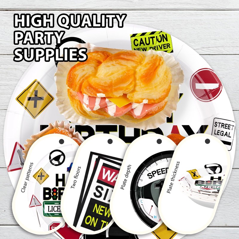 - 【Premium Material】The Drivers license party supplies disposable tableware set is made of heavy duty paper. Drivers birthday decorations plates are designed to be strong enough to hold a full plate of food without folding and tearing. The napkins are soft and non-smell.Napkins are 2-layered thick to ensure durability. (Tips:Please do not microwave these products.)