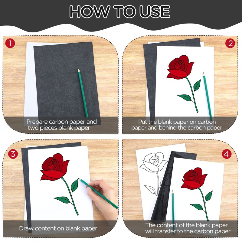 • Wide Application: This carbon copy paper can simplify arts and crafts, which can be applied to transfer drawings for paintings, watercolor transferring paper, transferring onto wood, suitable for home or office use.