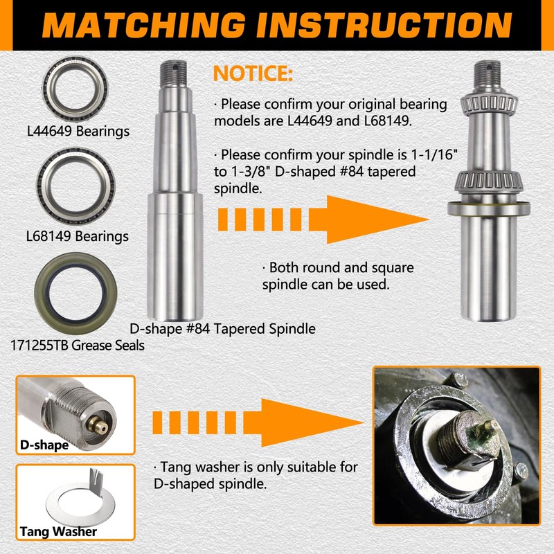 - 【FIT】Fits 3500lbs 1-3/8'' to 1-1/16'' Trailer D-style Tapered Axles, Spindle #84, EZ-Lube Axle. The tang washers are used for the spindle with a flat on the threaded end. For some D-style spindles with holes, cotter pins can be used to strengthen the fixation.
