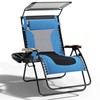GRETERST Zero Gravity Chair Lawn Chair Oversized Padded Recliner Folding Outdoor Patio Lounge Chair Anti Gravity Lounger with Canopy Shade, Headrest, Side Drink Tray, Blue