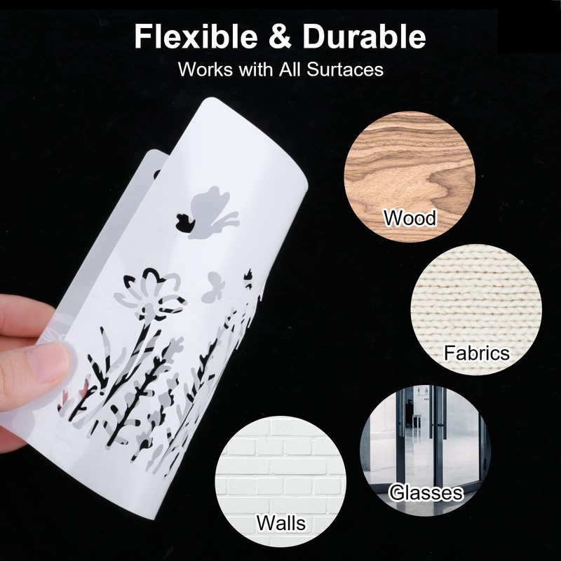 - Easy to use: reusable plastic stencils are easy to use, just paint them with a paint brush, and the pattern you want can be clearly displayed; After use, please wash the stencil and then store it in a ventilated place, with our stencils your craft projects will turn out good every time; Allows you to make DIY masterpieces quickly and efficiently in just a few minutes