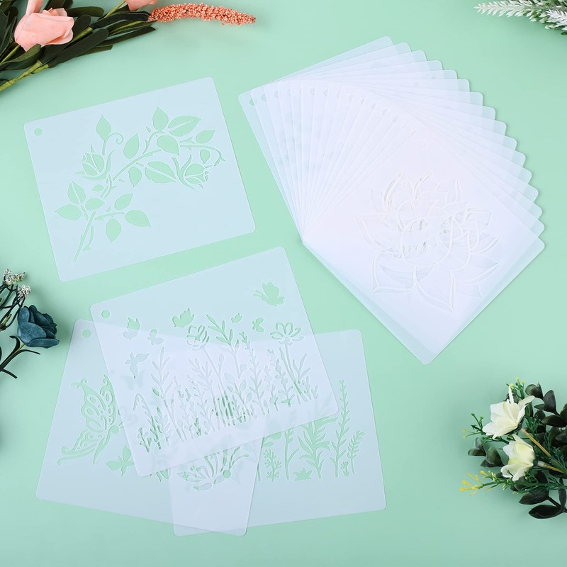 - What you get: the stencils for painting on canvas set contains 20 wild flower patterns to paint, a variety of different matching shapes give you endless possibilities to create different DIY art projects to experience the fun of painting; and each stencils for crafts measures approx. 13 x 13 cm, right size for you to use