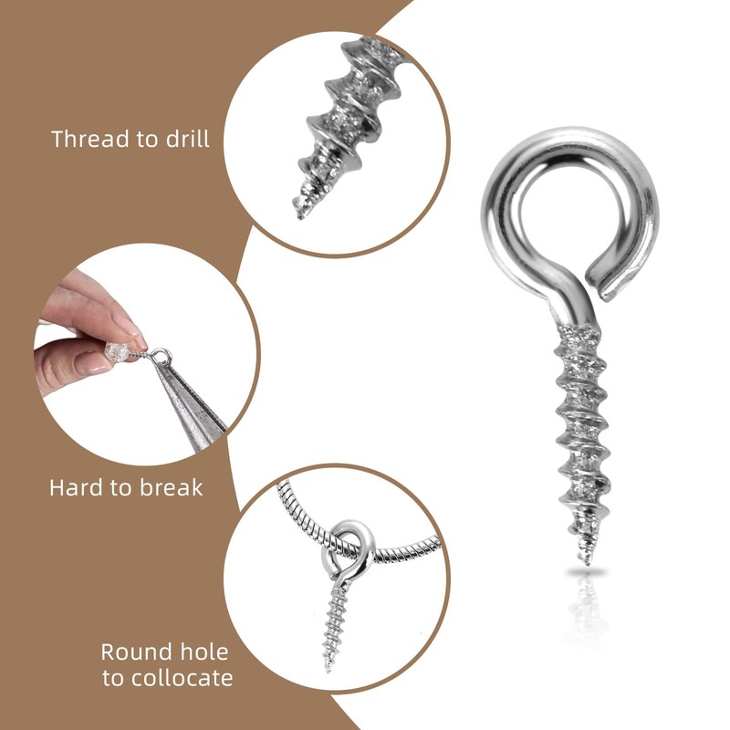 - EASY TO USE: threaded design eye hooks are very easy to install and fasten in your jewelry. Each eye screw hook features a round hole at the top, you can easily slide a string into the hole and make your own delicate and personalized jewelry crafts