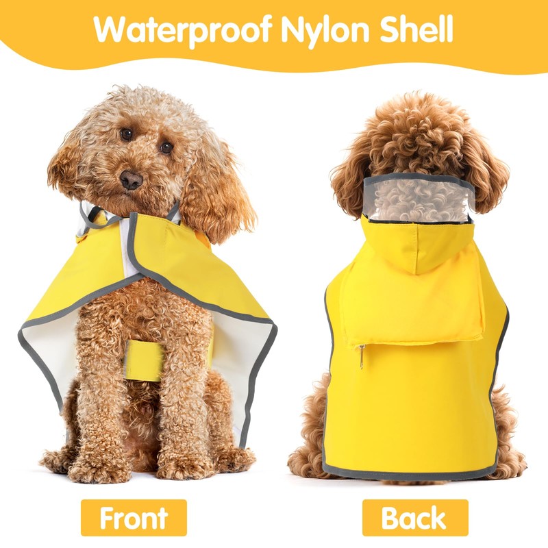 - Visible Window & Reflective Strips: With a transparent hood design, our rain jacket for dogs can help resist the rain, wind and snow without blocking the sight of your pets. Extra safety is ensured by the reflective brim for high visibility at night or on dreary rainy days