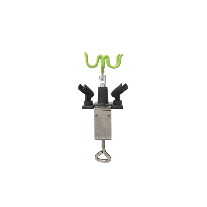 Adjustable to attach on table and bench tops. Holds up to 4 airbrushes with two rotatable bottom holders and two attached top holders that can pivot 180 Degree and rotate 360 Degree