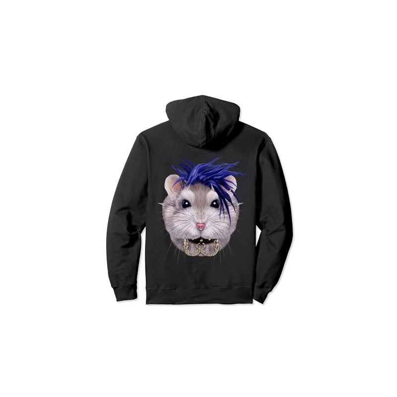 Grey Dwarf Hamster in Punk Rock Style Pullover Hoodie