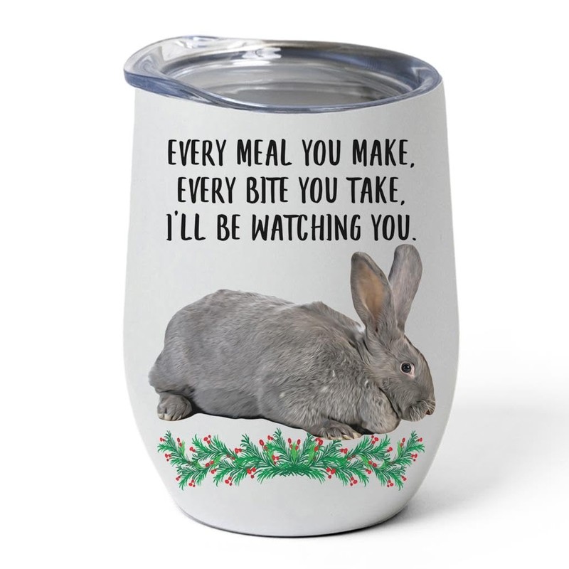 Grey Flemish Giant Rabbit Wine Tumbler 12oz - Stainless Steel With Lid - Funny Saying Every Meal You Make Every Bite You Take - Gifts for Rabbit Lovers