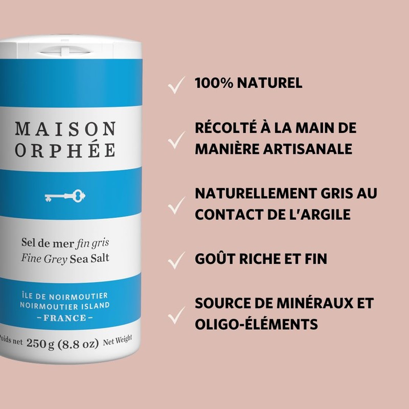 - ALL NATURAL FINE SEA SALT: Maison Orphée Sea Salt is hand harvested in Noirmoutier Island's tidal marshes. This traditional method preserves the salt's purity, keeping it entirely natural offering an authentic, additive-free sel de mer experience.