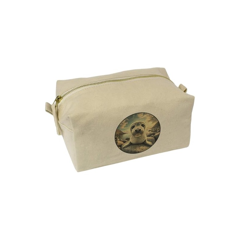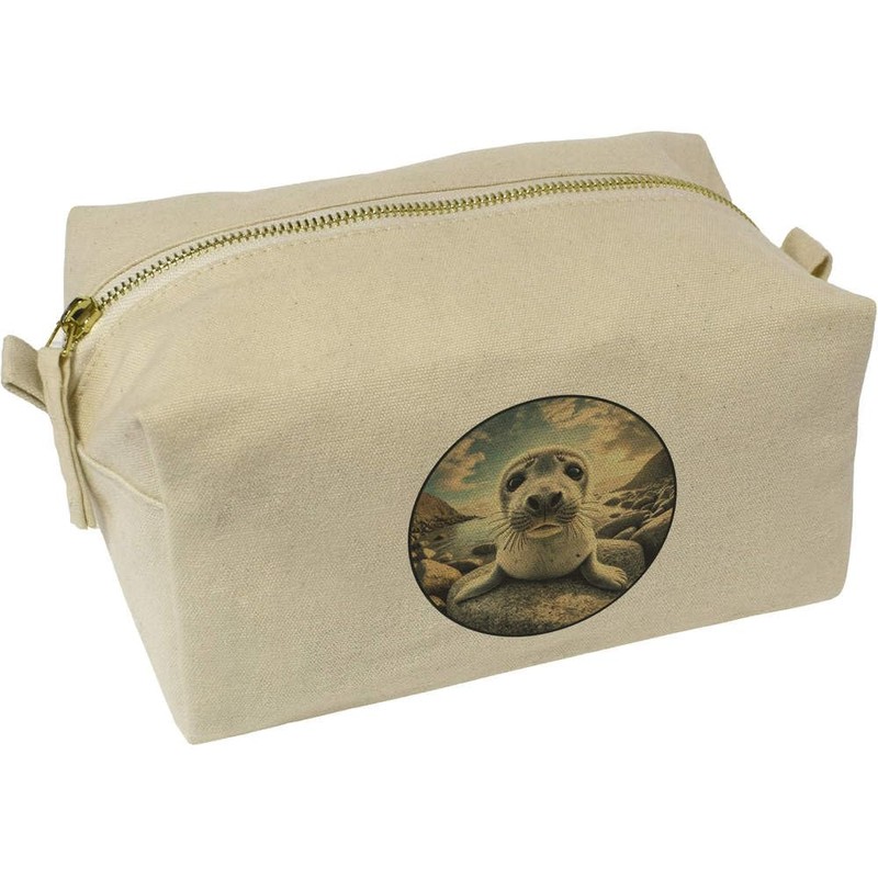 'Grey Seal Pup' Canvas Wash Bag/Makeup Case (CS00042449)