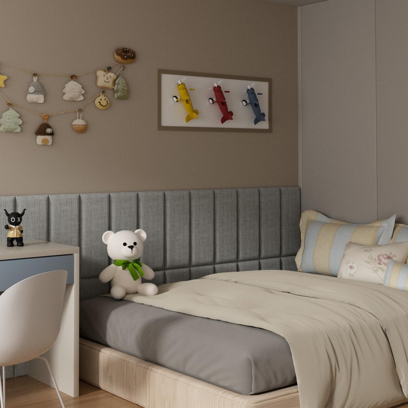 Greymond Upholstered Wall Mounted Headboard, Acoustic Wall Panel, Peel and Stick Wall Padding Panel, Light Grey Dorm Towel Fabric, 4-Pack
