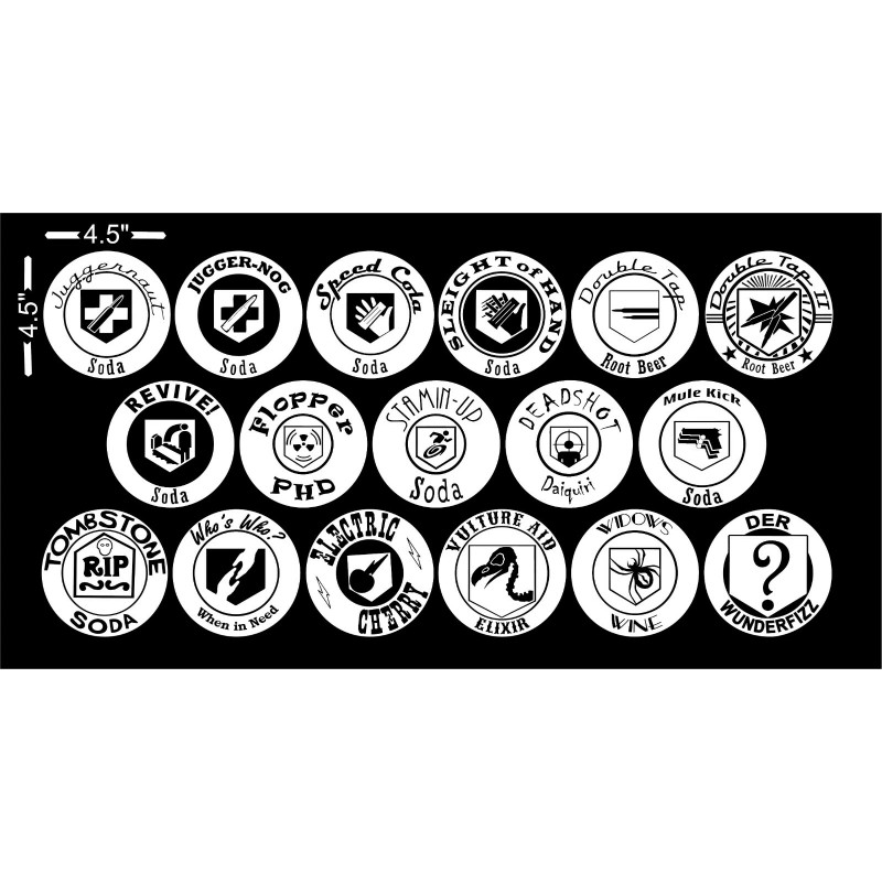 GRG Full Set of 17 Zombie Perk Logo Stickers for Indoor - 4.5 inch Gaming Decals - Purple, Low Tack, 4.5 inch