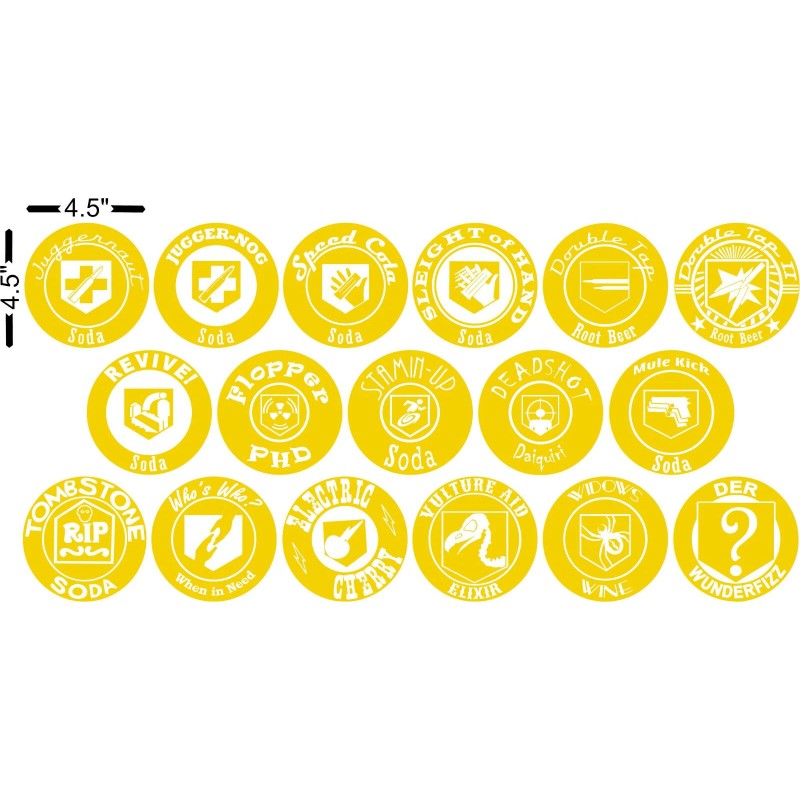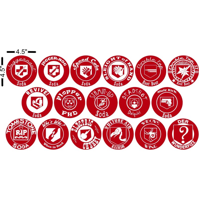 GRG Full Set of 17 Zombie Perk Logo Stickers for Indoor - 4.5 inch Gaming Decals - Purple, Low Tack, 4.5 inch