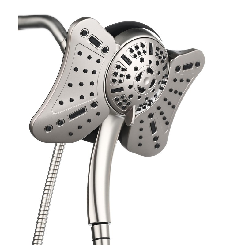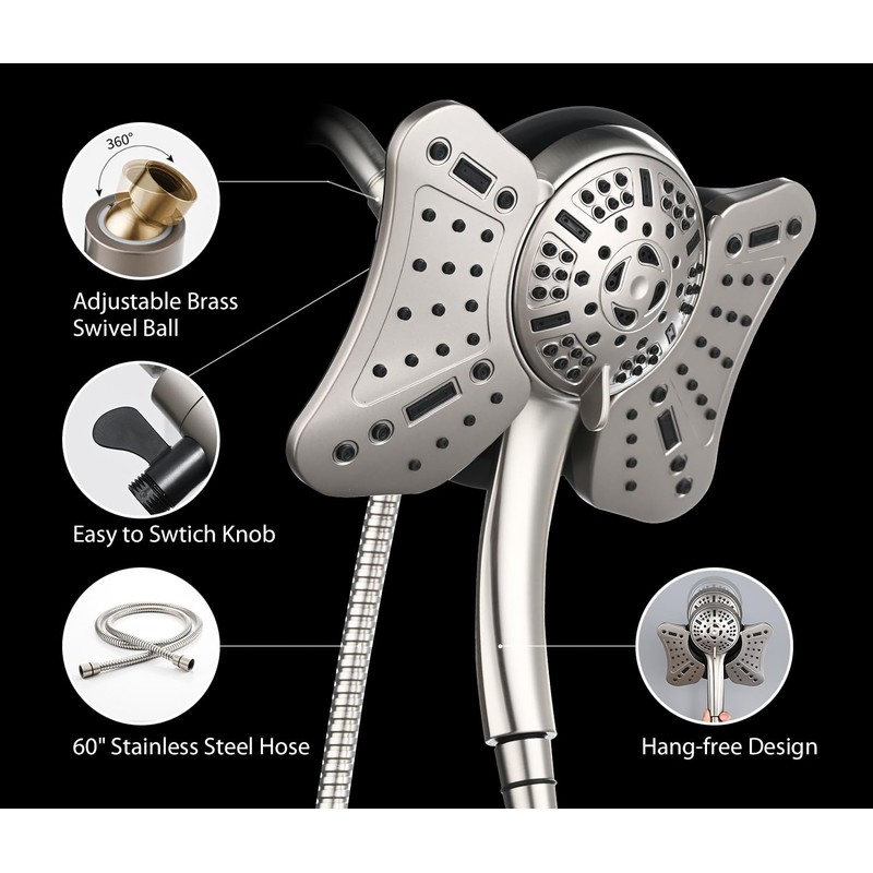 - Dual Shower Head Combo Set: Hand held shower head rainfall shower head combo, combination with up to 19 modes. Enlarged 8.7" panel allows for large area coverage