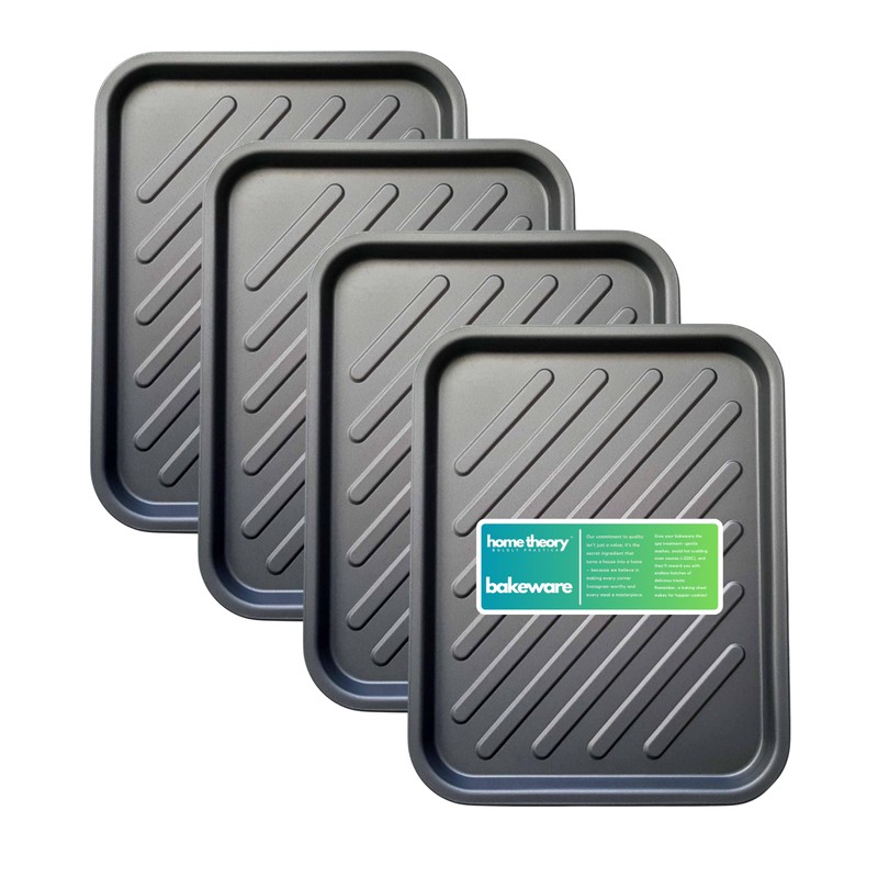 Griddle Style Ridge Baking Tray, Non-Stick, Dishwasher Safe, Multi-Pack Baking Tray Set, 38cm by Home Theory Bakeware (4)
