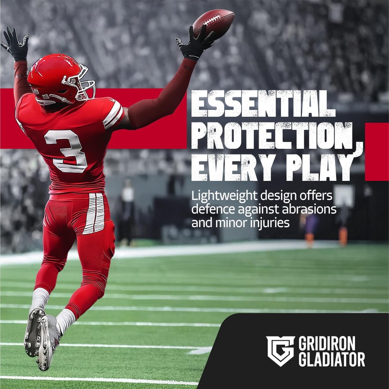 - Second Skin Protection: Our seamless and breathable football sleeves provide a lightweight layer of protection against abrasions and minor injuries from contact with the ground, other players, or equipment.