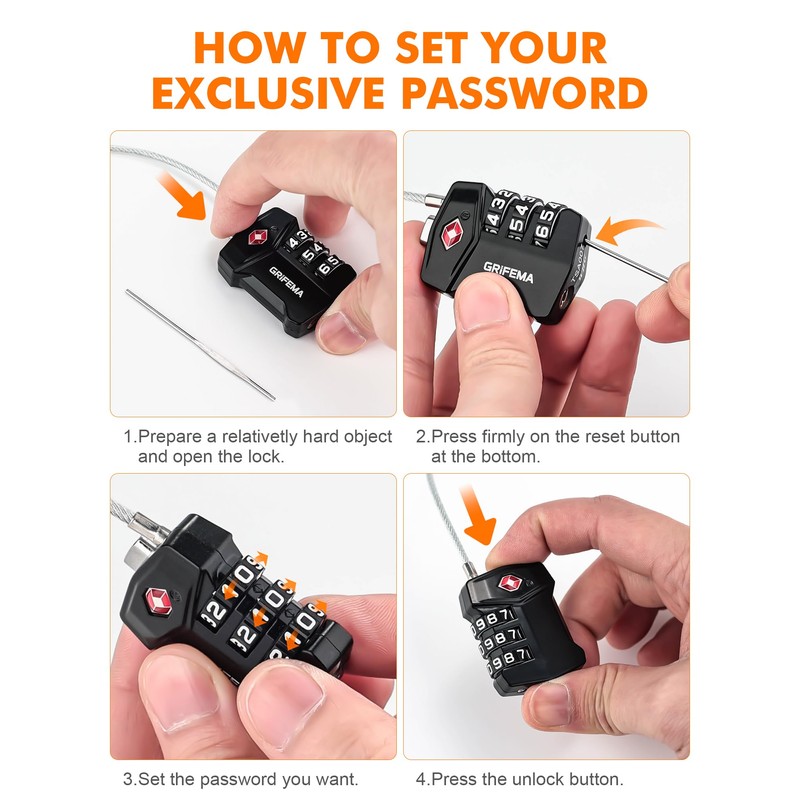 - 【Schnelle Einrichtungskombination】 Nie wieder Ihre Schlüssel verlieren! Richten Sie Ihren persönlichen 3-stelligen Code in Sekundenschnelle ein. Die ergonomische Knopfentriegelung ermöglicht die Einhandbedienung: Drücken Sie den oberen Knopf, verschieben Sie das Rädchen und Ihr Koffer oder Rucksack wird sofort entriegelt.