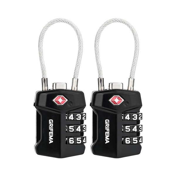 GRIFEMA [2er Pack] Sicherheitsschloss mit 3-stelligem Code, TSA-approved Reiseschloss mit bruchfestem Kabel für Sporttaschen und Koffer (GA1006-2)