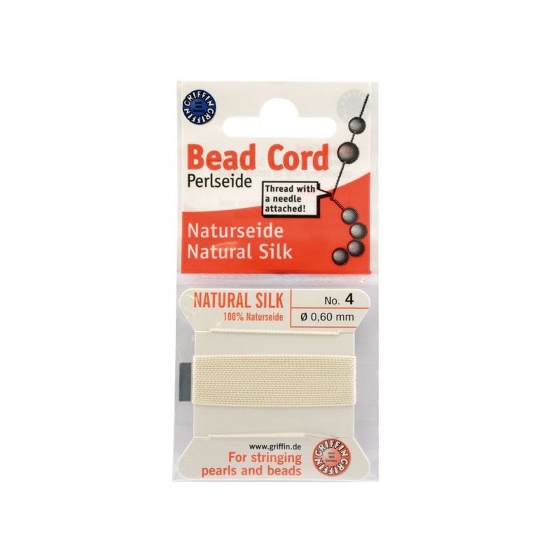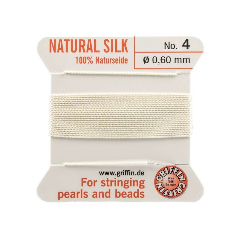 Griffin 100% Natural Silk Beading Cord String Thread - White - 2 metres with one Needle - Size 0.60mm