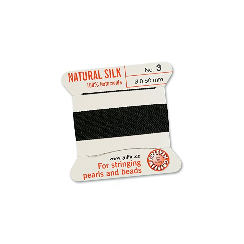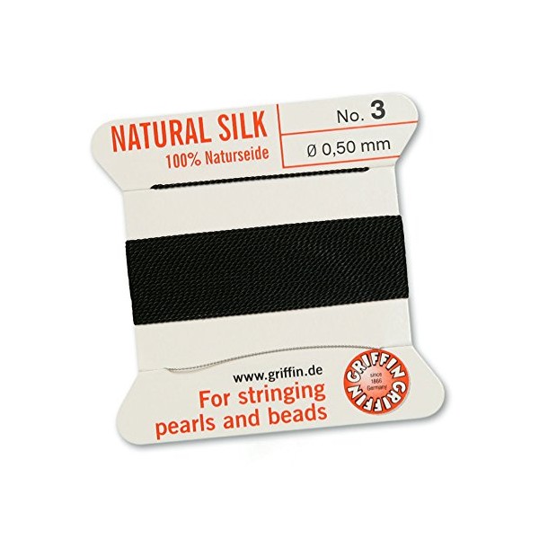 GRIFFIN 100% Natural Silk, Black, 2 m with a Needle, Size 0.50 mm