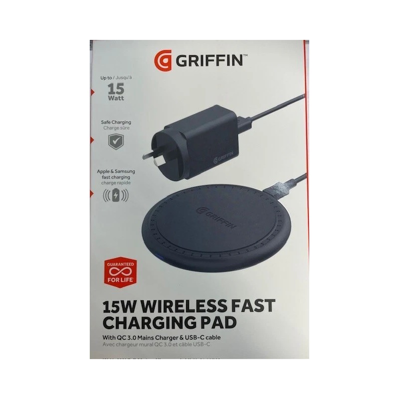 GRIFFIN 15W Wireless Fast Charging Pad with USB-C Cable & QC Wall Charger (Aus)
