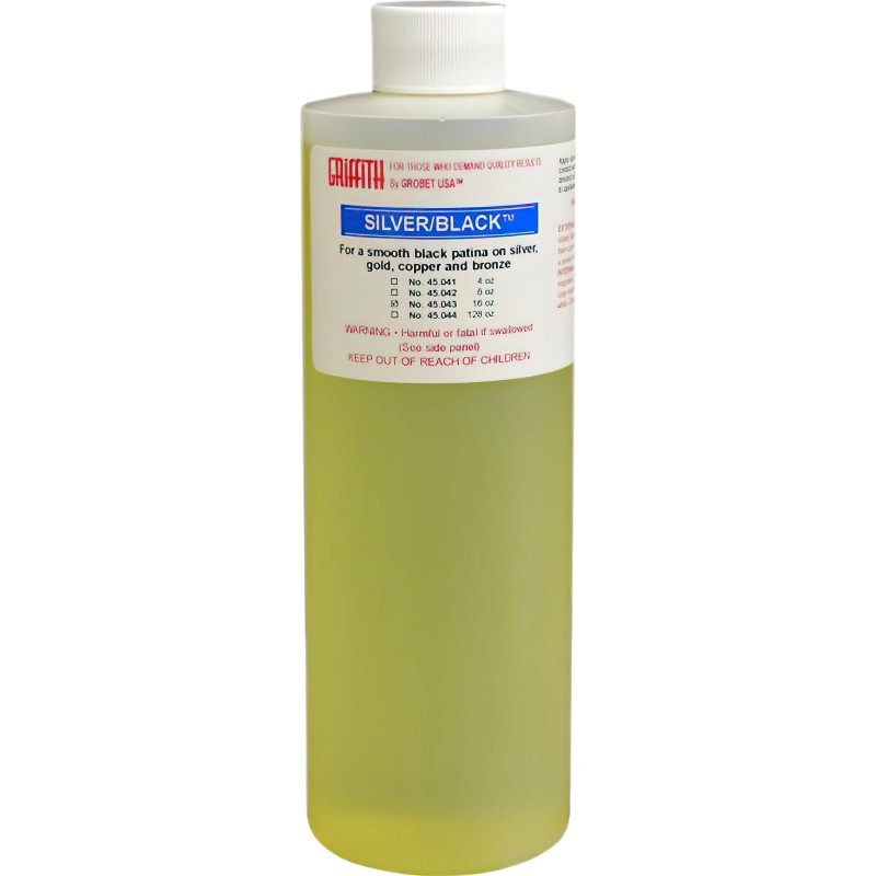Griffith Silver Black 16 Oz, Item No. 45.043An acid based oxidizer which produces an instantaneous deep black patina on silver, gold, copper or bronze. Corrosive UN 1789.