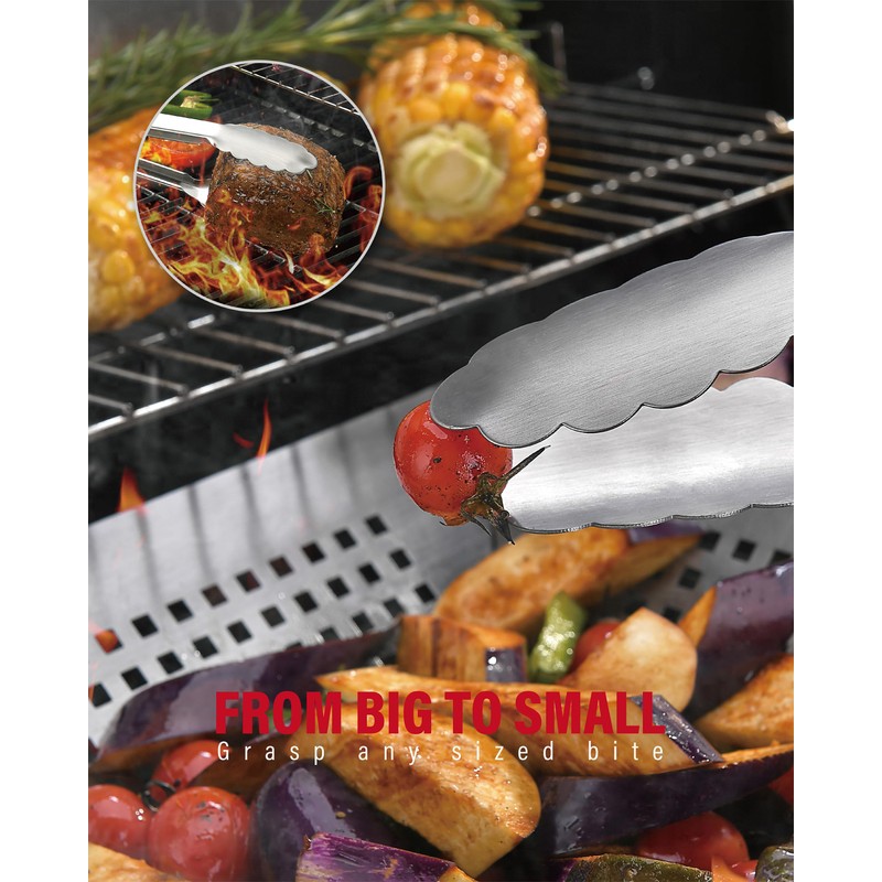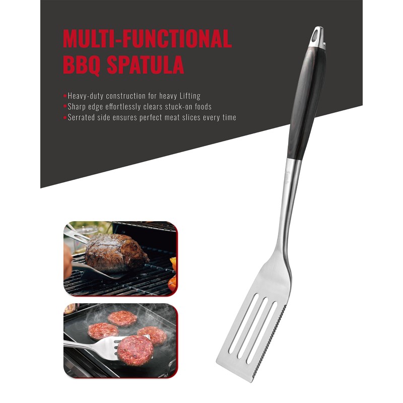 - 𝐕𝐞𝐫𝐬𝐚𝐭𝐢𝐥𝐞 𝐏𝐞𝐫𝐟𝐨𝐫𝐦𝐚𝐧𝐜𝐞: Designed for culinary excellence, our multi-purpose spatula boasts a sharp bottom edge for effortless food flipping and a serrated side for precision slicing, while our Lockable Grill Tongs offer convenient storage and single-handed unlocking for seamless operation.