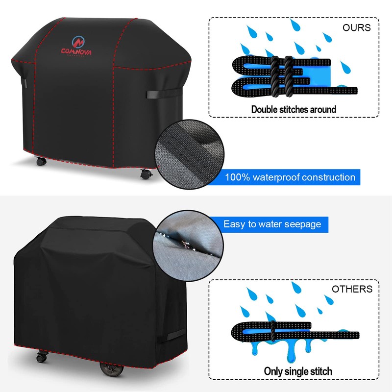 COMNOVA grill covers are designed to withstand all harsh weathers, protect your grill from sunlight, rain, dust, dirt and other outdoor elements all year round.