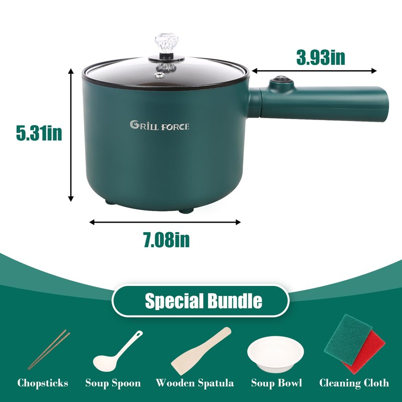 GRILL FORCE Hot Pot Electric, 1.8L Ramen Cooker, Portable Cooker, Non-Stick Frying Pan, Electric Pot for Pasta, Egg, Steak, Over-Heating Protection, Dual Power Control, Suit Dorm Room, Travel,RV,Hotel