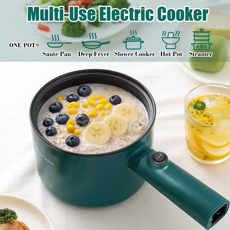 - 【1.8L Electric Cooker】Enjoy greater versatility with this 1.8L cooking pot, specially designed for small families, couples, or solo cooks. Big enough to cook ramen, hot pot, soup, dumplings, porridge, or oatmeal, yet compact enough for any small kitchen. Whether it’s a warm breakfast or a late-night comfort meal, this pot brings homemade goodness to your day.