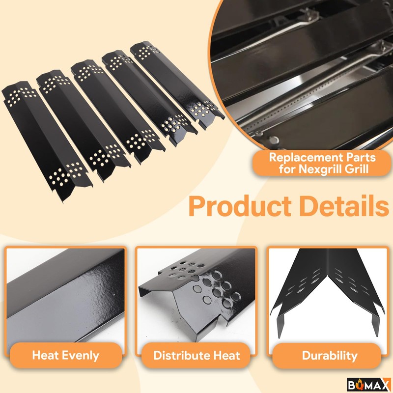 - ❀Heat Plate Dimension: 14 9/16'' x 4 3/16'', Burner Dimension: 14 7/8"; ❀You will get 2-pack matte cast iron cooking grate, 5-pack burners, 5-pack heat plates for nexgrill replacement parts 5 burner