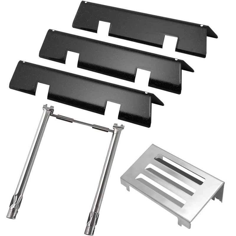 - List includes: 3x grill flavorizer bars, 1x burner tube, 1x heat deflector. Measure: Flavorizer Bars: 15 1/4"x 3-1/2"x 2-1/2" each; Grill Burner: main burners 17 15/16" L, crossover tube 10-1/2" L; Heat Deflector: 7-3/4" L x 4-1/4" W x 2-1/8" H.