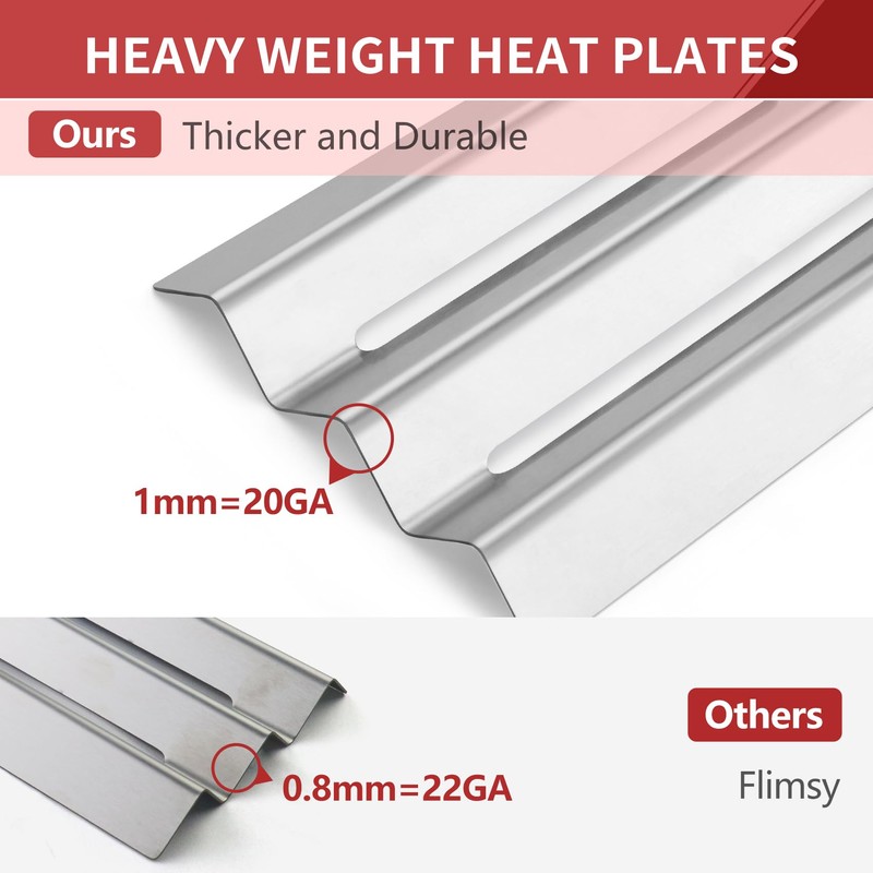 - Upgraded Heavier and Thicker: The napoleon grill accessories are made of solid stainless steel that heavier and more durable than others, premium stainless steel heating plates allow for better heat distribution in your nexgrill gas grill and extend the life of your heating tent and burners