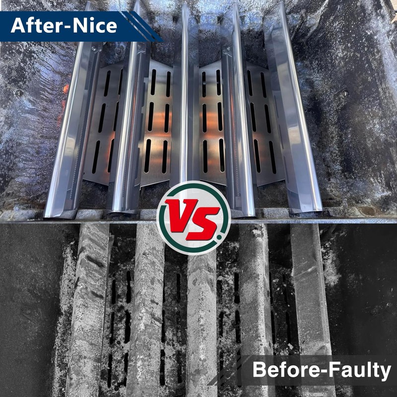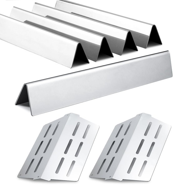 - 【Package and Size】Come with weber genesis grill parts e/s 310/320, includes 5pcs 17 1/2" L X 2 1/4" W X 2 3/8" H weber genesis 310 flavorizer bars, 2pcs 13 1/4" L x 8 3/4" W weber genesis s-330 heat deflectors. 【Please Note】Please compare with the size and original part number of weber grill parts genesis before order to find the most suitable weber grill parts genesis 300 series.
