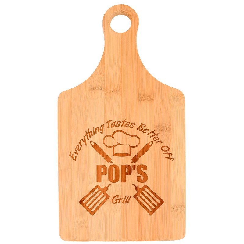 Grilling Tools For Pop Everything Tastes Better Off Pop's Grill Laser Engraved Paddle Shaped Bamboo Cutting Board