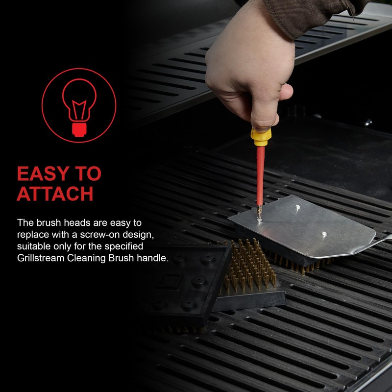 Extend the lifespan of your Grillstream Cleaning Brush with our ultimate solution: a pack of 3 replacement heads. As your original brush head bristles wear out from handling tough grill debris, these replacement heads come to the rescue. Crafted with durable hard brass bristles, they retain the exceptional cleaning power of the original heads, ensuring your brush lasts longer without compromising on quality.