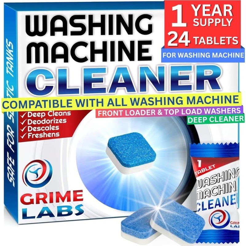 GRIME LABS Washing Machine Cleaner Tablets - Penetrating Deep Clean Washer Cleaner Tablets For Front Loader And Top Load HE - Active Formula Tub Descaler Deodorizer