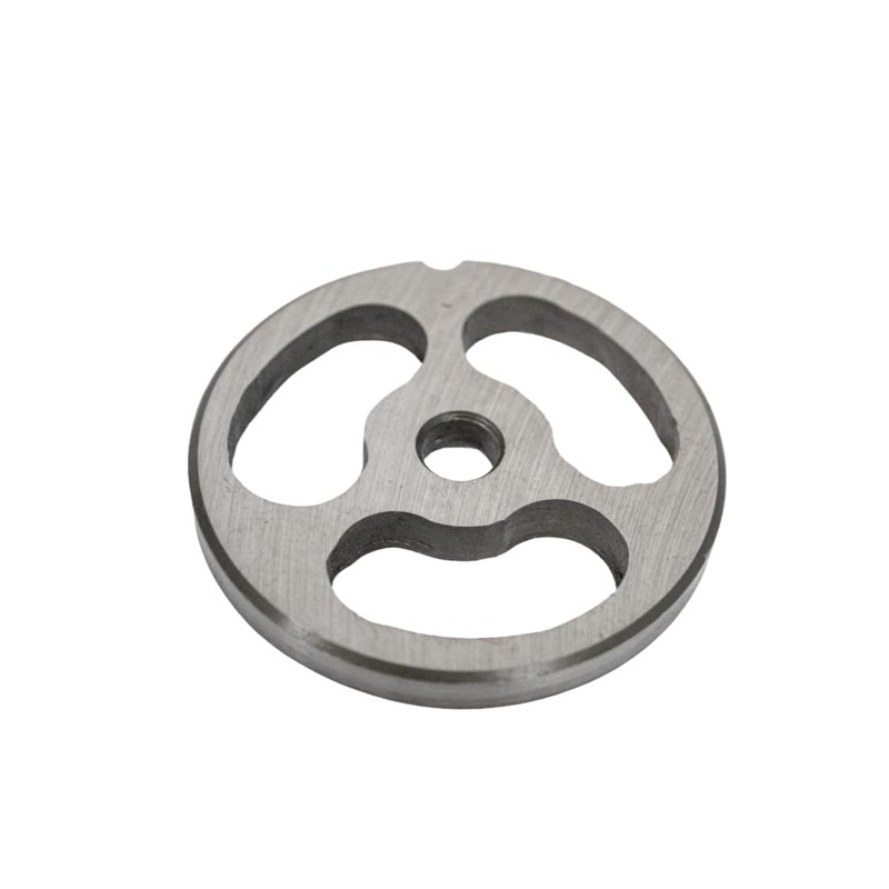 Replacement #12 grinder plate, fits most size #12 grinders. The plate has kidney holes. Kidney size hole is typically used for first grind chunks.