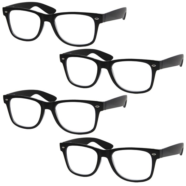grinderPUNCH 4 Pairs Deluxe Reading Glasses Spring Hinge Stylish Readers with Rx Magnification (4 Pack Black, 2.50 x)