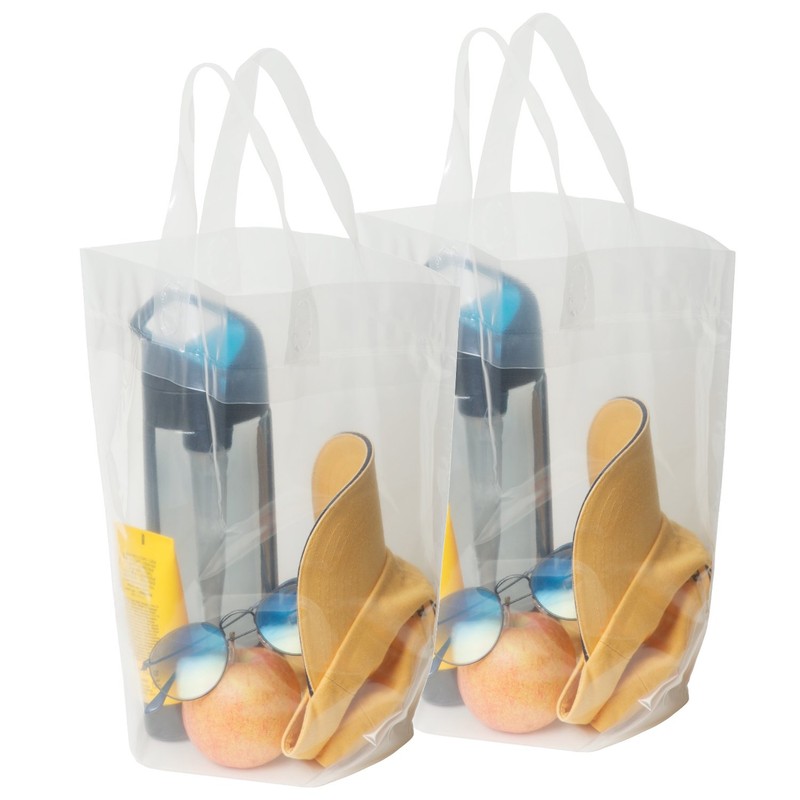 - 12’’ Wide and 12’’ Height and 6” Depth. Clear Bag with Strong Soft Loop Easy-to-Carry Handles.
