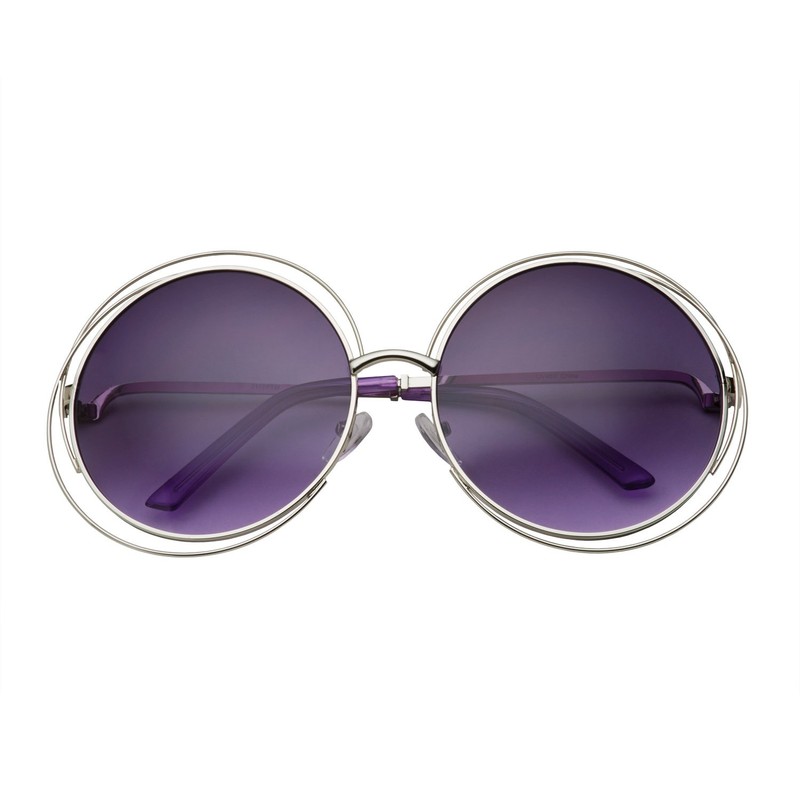 grinderPUNCH Women's Round Oversized Wire Sunglasses in Metal Silver Purple