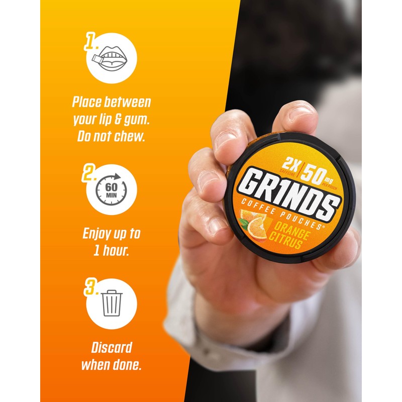 • New 3-CAN SAMPLER PACK: The Grinds Coffee 3 Flavors Sampler Pack allows you to try each of our top 3 coffee pouch flavors and discover which ones you like best. Our new 3-can Energy sampler includes one can each of Double Mocha, Sweet Mint, & Orange Citrus.
