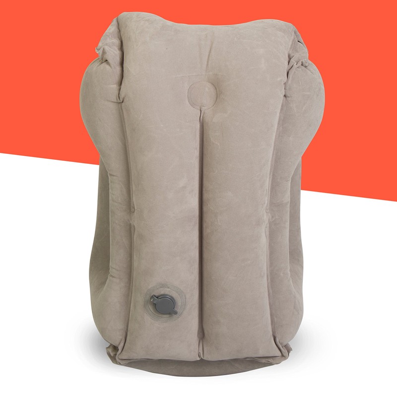 To use the cuddly travel pad, you need to inflate it with a few breaths. When inflated, the headrest cushion has dimensions of approx. 55 x 35 x 30 cm.
