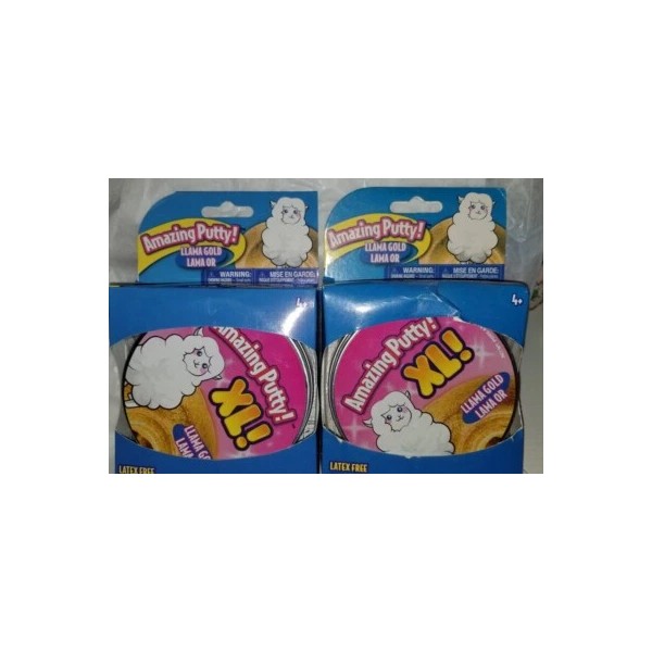 Two containers of Llama Gold Amazing Putty. Boxes have damage but tins are good.