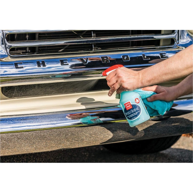 This is the finest spray and wipe cleaner and detailer available. Use Speed Shine more often than any other car care product. It's a fast, safe way to keep any painted surface clean and brilliant. A perfect between washes cleaner for your vehicles. A quick mist and light toweling removes dust and other foreign residue, leaving behind a brilliant surface. Forget about the puddle you just drove through, the dust cloud that landed on your paint or the bird that picked your car to relieve itself on. Speed Shine removes bird droppings as quickly as possible, before they etch the paint. The best part is that it only takes ten minutes to detail your entire car. Special lubricants will not scratch your paint's surface. Perfect for all paints, clear coats, wheels, chrome and exterior plastic trim. Extends time between washes.